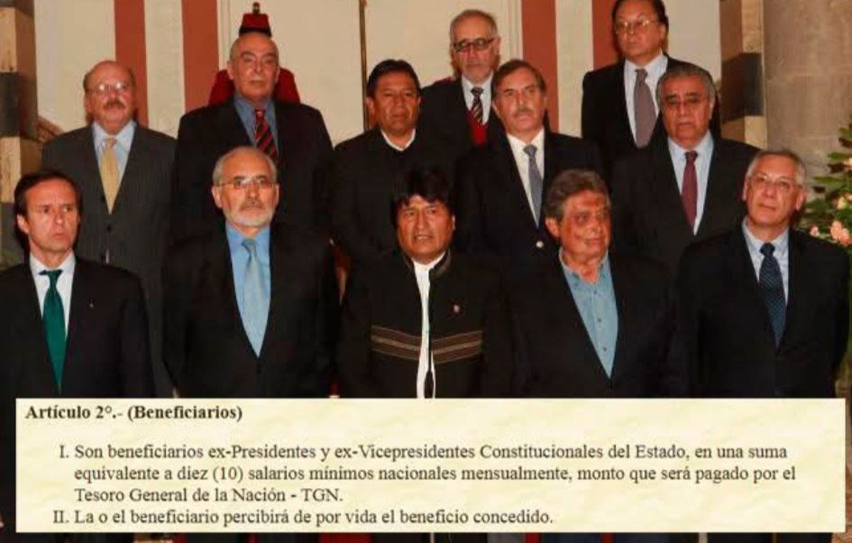 El aumento del Salario Mínimo Nacional a Bs 3.300 tuvo un efecto inmediato en las rentas vitalicias de los expresidentes de Bolivia, que pasaron de Bs 27.500 a Bs 33.000 mensuales. Esto se debe a que, por normativa vigente, dichas rentas equivalen a 10 salarios mínimos, por lo que cualquier incremento se refleja de manera automática en estos beneficios.