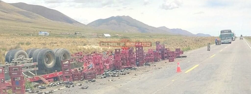 Se registró este día el vuelco de un tráiler que transportaba carga de cerveza en la carretera que conecta Oruro y Potosí. El hecho ocurrió a unos dos kilómetros de la tranca de Vichuloma, un punto estratégico de la ruta interdepartamental.