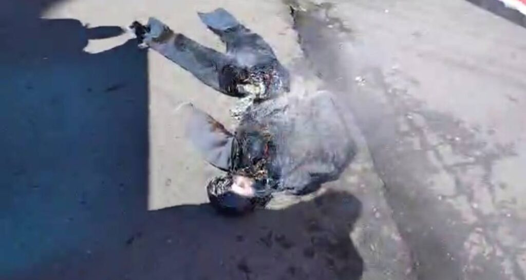 La escena se dio ante la mirada de vecinos y transeúntes, mientras los participantes realizaban saltos, gritos y consignas, concentrando su protesta en la figura simbólica utilizada durante la manifestación.